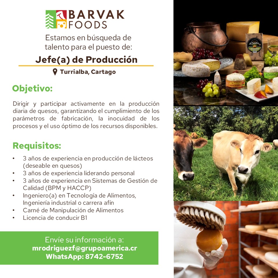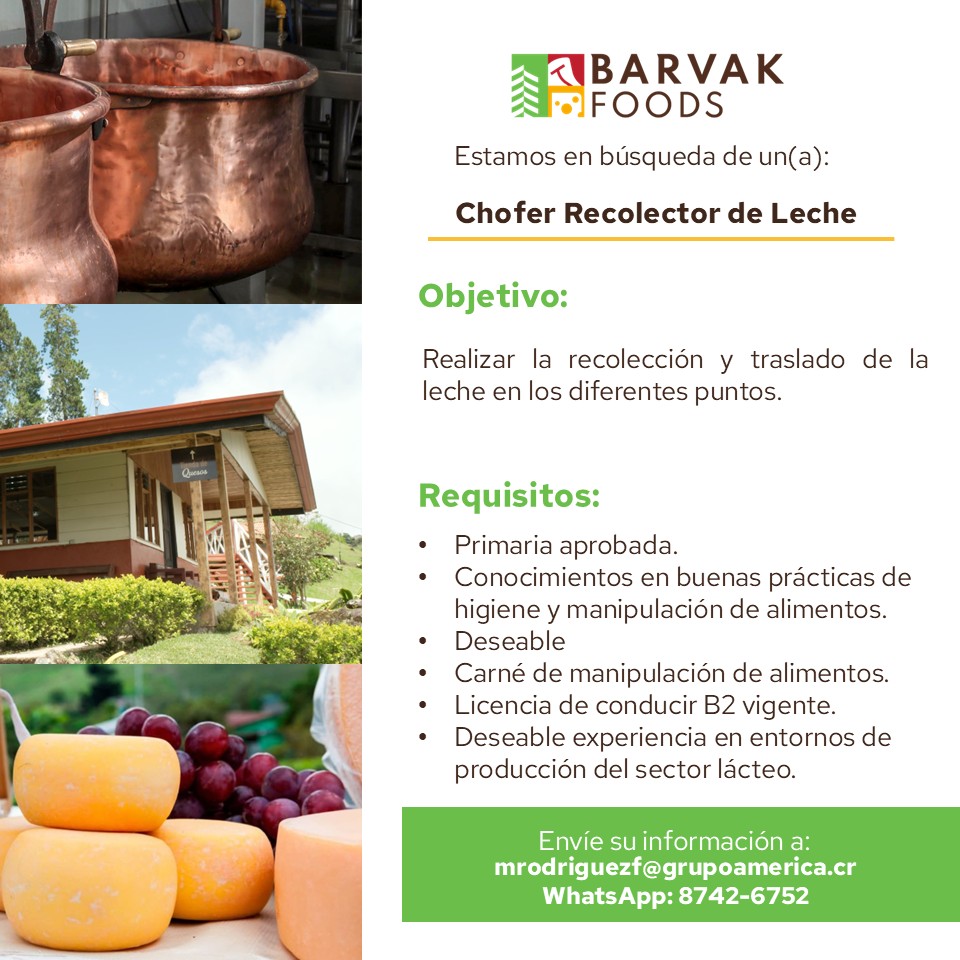 La empresa Barvak Foods, planta de lácteos, dedicada a la elaboración de quesos y otros productos derivados, perteneciente al Grupo América, un grupo empresarial con operaciones en distintas industrias, se encuentra en proceso de reclutamiento para diversas posiciones y deseamos brindar prioridad al talento de la zona:
