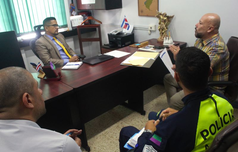 El Alcalde de Turrialba, Carlos Hidalgo Flores y oficiales de la Policía Municipal, sostuvieron este jueves 29 de mayo una reunión con Tomás Sierra, Asesor Especialista de la Oficina de Asuntos Internacionales de Narcóticos y Aplicación de la Ley (INL) de la Embajada de Estados Unidos de América.